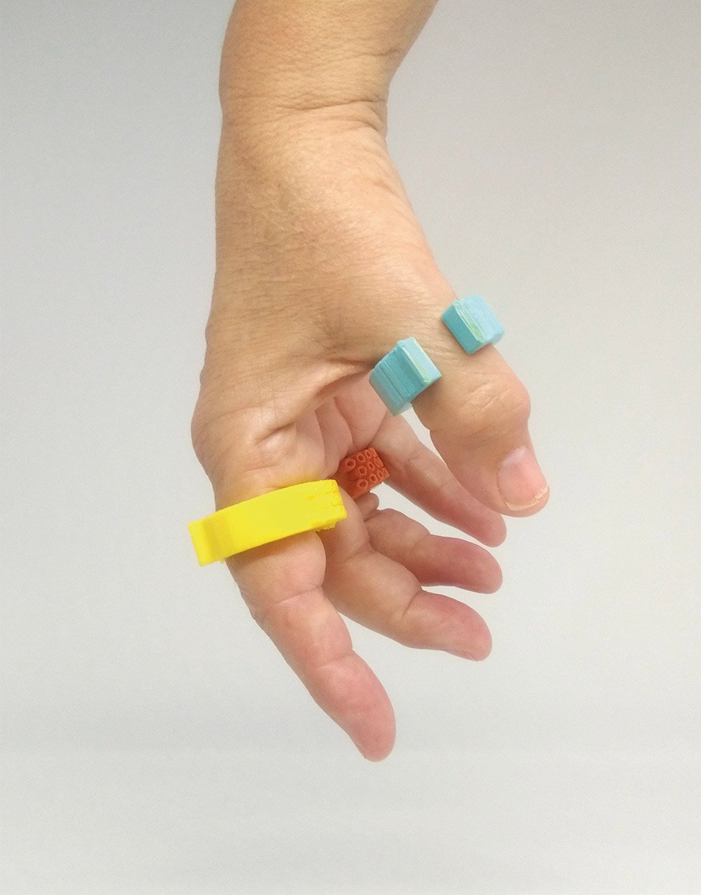 A través de una investigación de la enfermedad y del sector profesional; se llegó a un diseño funcional y estético: se trata de unos anillos abiertos de silicona con esqueleto de acero fino, que permiten colocar los dedos tanto si están deformados por la enfermedad o no; y con una zona de patrón tipo ventosa en la zona de la palma de la mano, aportando un agarre extra para estos individuos.